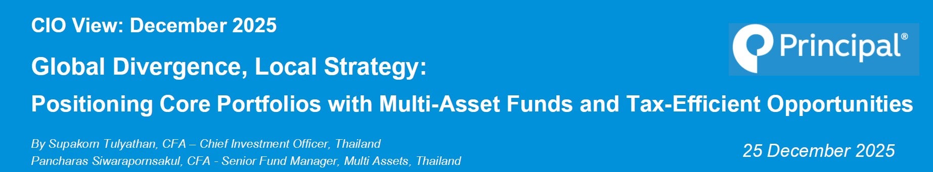 For investors seeking tax-efficient opportunities, we recommend Principal Vietnam Equity Fund RMF (PRINCIPAL VNEQRMF), which benefits from Vietnam’s robust economic growth, a government GDP target above 10% in 2026, rising corporate profits, ongoing infrastructure and private sector development, and the country’s recent upgrade to the FTSE Emerging Market Index. For Thai equities, Principal Equity ESG Fund (PRINCIPAL EQESG-ThaiESG) and Principal Equity Retirement Mutual Fund (PRINCIPAL EQRMF) offer attractive opportunities, supported by reasonable valuations and improving fundamentals. While uncertainties surrounding the early 2026 elections that could weigh on growth, dividend-yielding stocks are expected to perform relatively well during slower economic periods. We apply a barbell strategy, combining high-quality stocks with consistent earnings and dividends alongside selectively targeted companies that have bottomed out or have specific catalysts, such as deleveraging or enhanced shareholder returns. Finally, Principal Property Income Retirement Mutual Fund (PRINCIPAL iPROPRMF) provides exposure to Thailand and Singapore REITs, delivering an expected dividend yield of 5–7%. The portfolio focuses on bottom-up stock selection and strong company fundamentals to generate excess returns. By emphasizing quality and selectively overweighting resilient long-term earnings growers, the portfolio is positioned to perform well during periods of economic weakness and low yields. In a more risk-on market environment, some relative performance headwinds may occur, but the fund remain supported by solid fundamentals and reliable income characteristics.