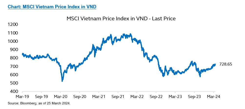 Vietnam’s stock market is on the cusp of a significant transformation, with a clear path towards an upgrade from Frontier Market to Emerging Market status. This presents a compelling investment opportunity for those seeking exposure to a high-growth market on the verge of a major revaluation. Two key hurdles currently stand in the way of the upgrade: the pre-trade deposit requirement for foreign investors and limitations on foreign ownership. However, the Vietnamese government is actively addressing these challenges. The pre-trade deposit requirement is expected to be eliminated by late 2024 or within 2025, while foreign ownership limit problem is expected to be addressed through increased quotas and the launch of depositary receipts (NVDRs) sometime later in 2025. Given the timeline for these improvements, it’s expected that FTSE will likely move forward with the upgrade before MSCI. This is because FTSE only requires one of the two criteria – the removal of the pre-trade deposit requirement – to be met for the upgrade, whereas MSCI requires both to be met.