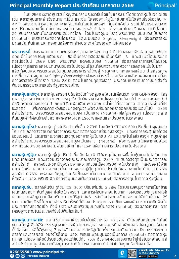 Principal Monthly Report ประจำเดือน มกราคม 2569