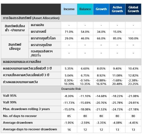 สำหรับผู้ลงทุนที่มีระดับความเสี่ยง “ปานกลางค่อนข้างสูง” แนะนำพอร์ตการลงทุน “Income”