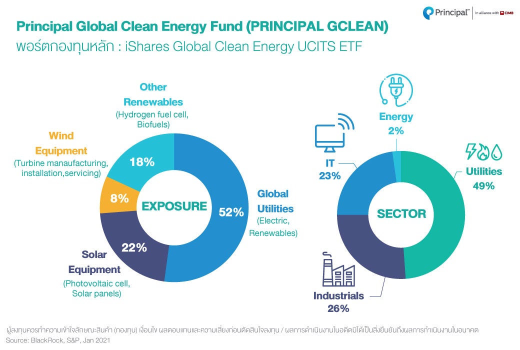 ในขณะที่ความน่าสนใจของ “กองทุนเปิดพรินซิเพิล โกลบอล คลีน เอ็นเนอร์จ (PRINCIPAL GCLEAN)” คือโอกาสเข้าไปลงทุนในหุ้นพลังงานสะอาดทั่วโลกซึ่งเป็น Mega Trend และเป็นพลังงานแห่งอนาคตที่เพิ่งอยู่ในช่วงเริ่มต้นของวงจรขาขึ้นเท่านั้น