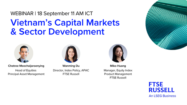 บริษัท FTSE Russell ได้เชิญคุณชาตรี มีชัยเจริญยิ่ง หัวหน้าการลงทุนฝ่ายตราสารทุน บริษัทหลักทรัพย์จัดการกองทุน (บลจ.) พรินซิเพิล จำกัด ผู้บริหารกองทุนเปิดพรินซิเพิล เวียดนาม อิควิตี้ (Principal Vietnam Equity Fund: PRINCIPAL VNEQ) ร่วมด้วย Wanming Du, Director, Index Policy, APAC at FTSE Russell และ Miko Huang, Manager, Equity Index Product Management at FTSE Russell