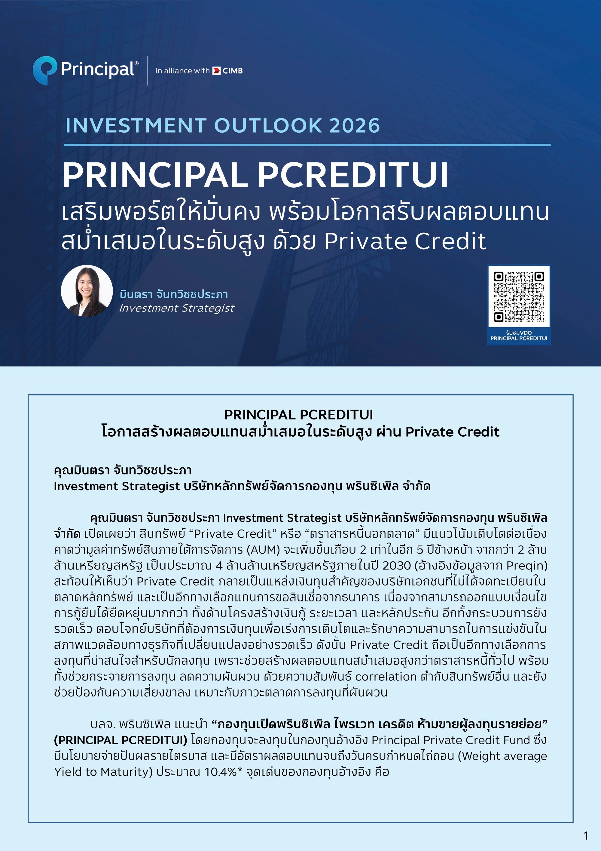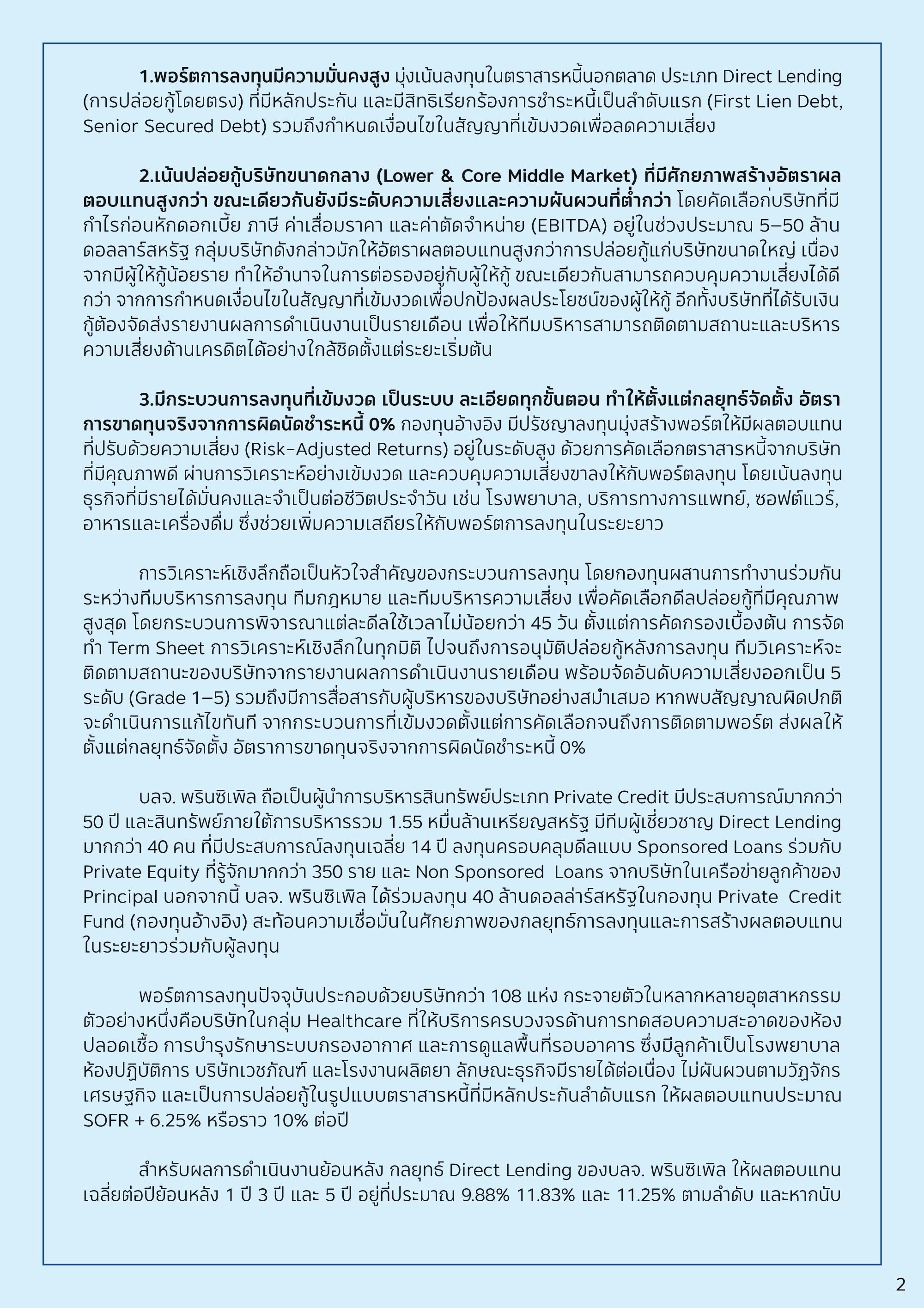 PRINCIPAL PCREDITUI เสริมพอร์ตให้มั่นคง พร้อมโอกาสรับผลตอบแทนสม่ำเสมอ ในระดับสูง ด้วย Private Credit