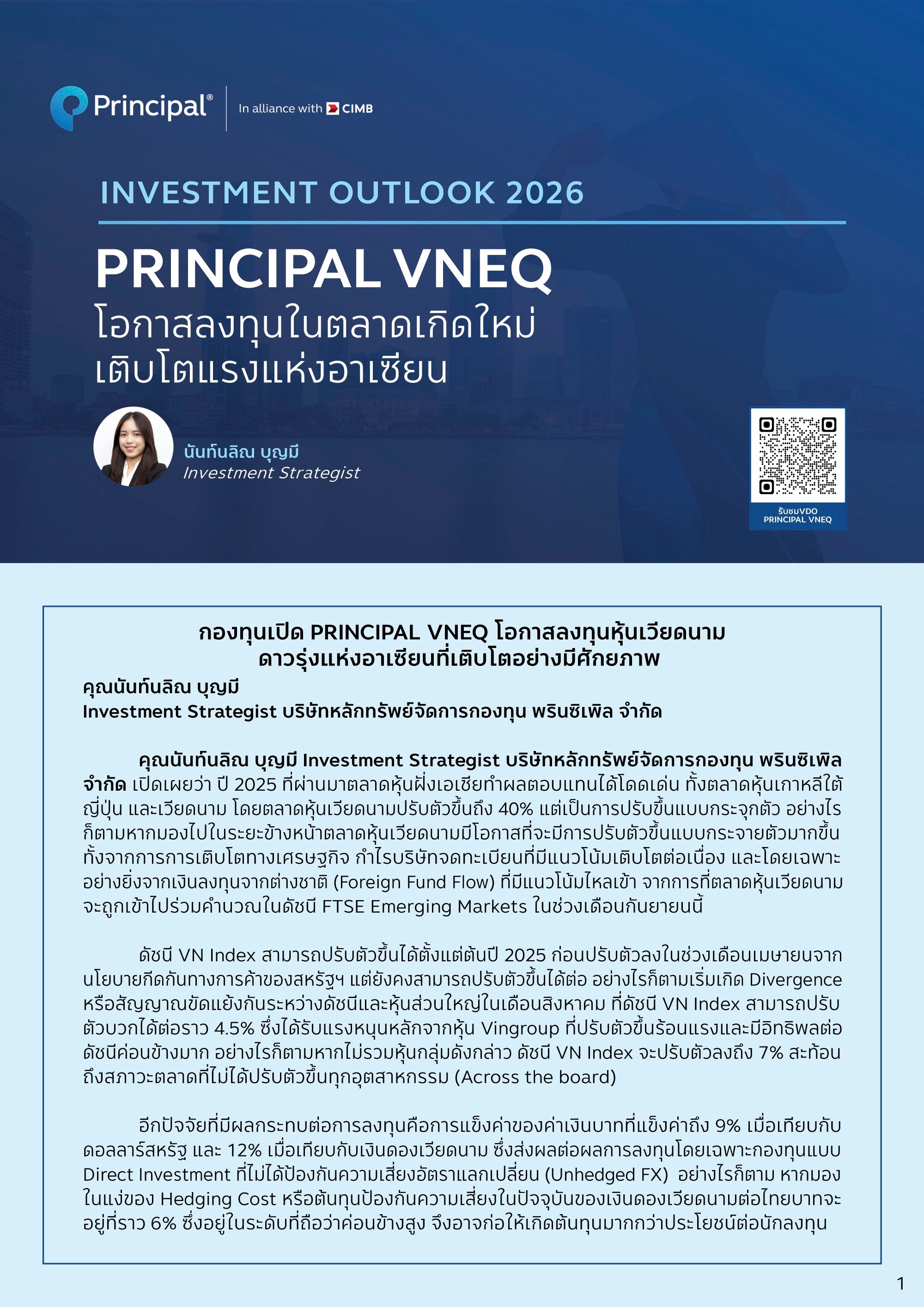 PRINCIPAL VNEQ โอกาสลงทุนในตลาดเกิดใหม่เติบโตแรงแห่งอาเซียน