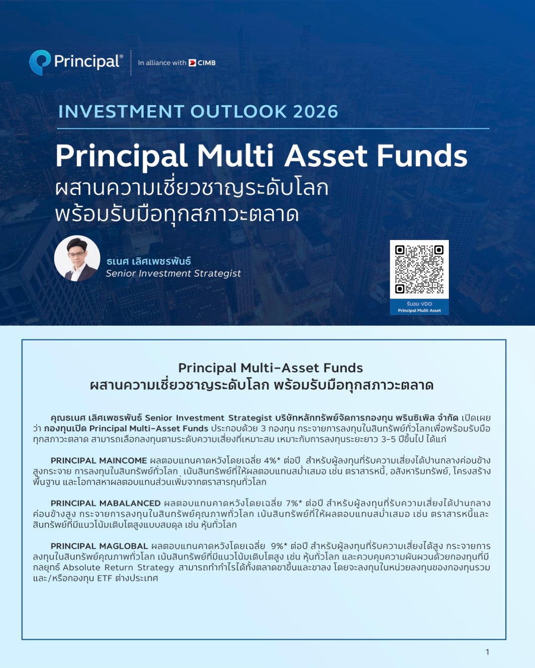 Principal Multi Asset Funds ผสานความเชี่ยวชาญระดับโลก กับกองทุนที่พร้อมรับมือทุกสภาวะตลาด