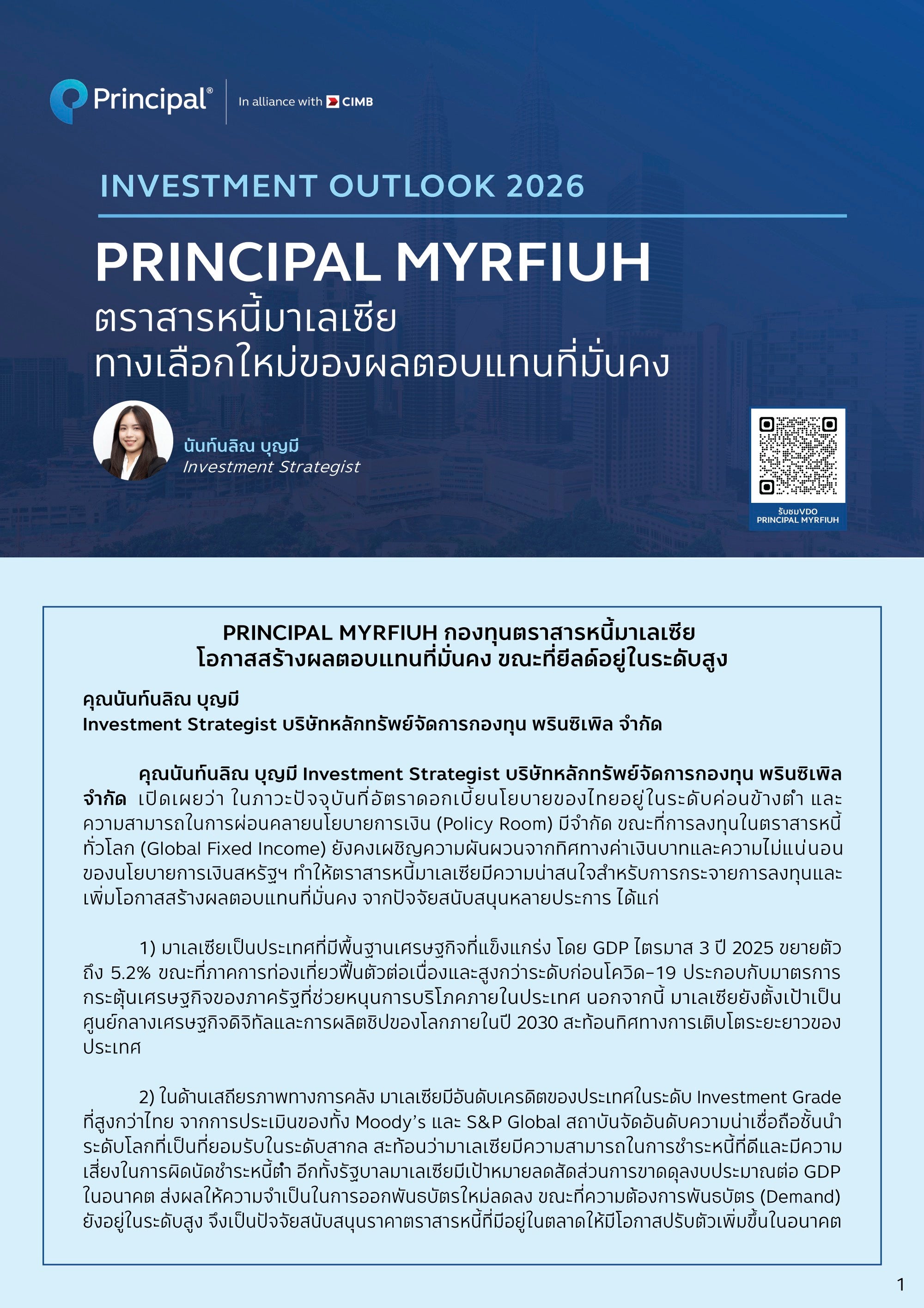 PRINCIPAL MYRFIUH ตราสารหนี้มาเลเซีย ทางเลือกใหม่ของผลตอบแทนที่มั่นคง
