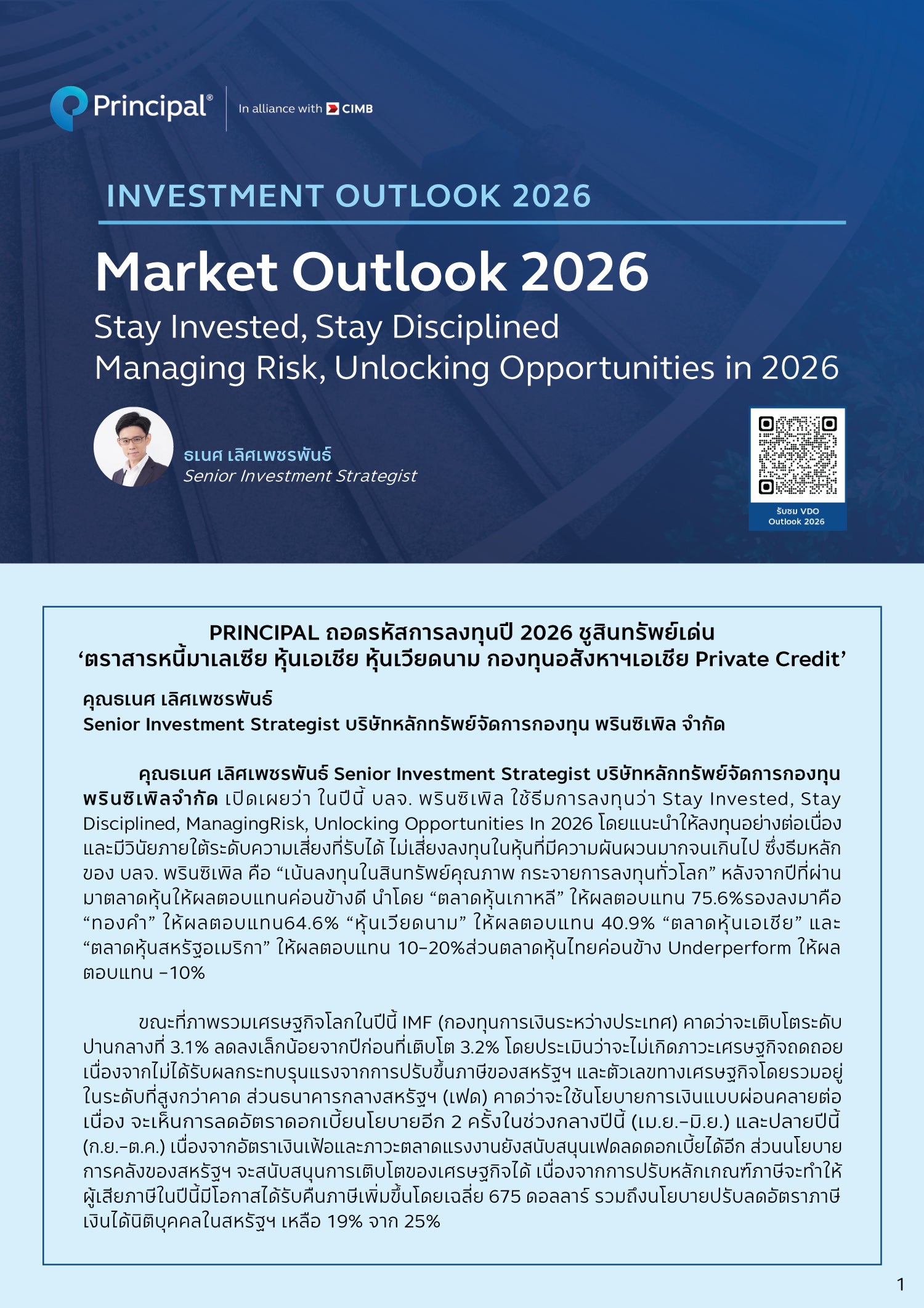 โดย คุณธเนศ เลิศเพชรพันธ์ Senior Investment Strategist บลจ.พรินซิเพิล