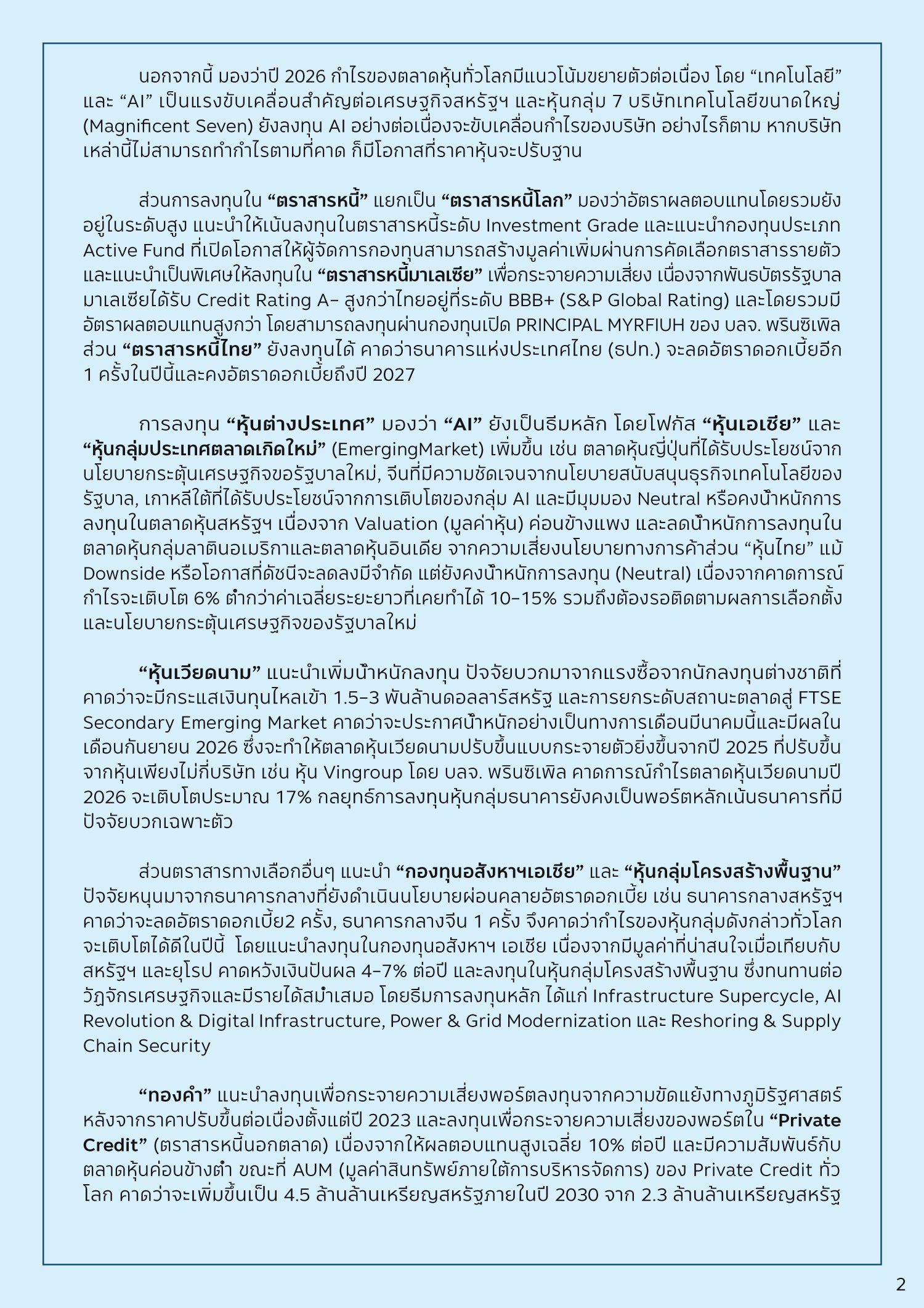 โดย คุณมินตรา จันทวิชชประภา Investment Strategist บลจ.พรินซิเพิล