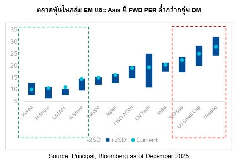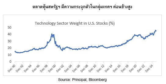 ดังนั้นบลจ.พรินซิเพิลจึงแนะนำกระจายความเสี่ยงออกจากตลาดหุ้นสหรัฐฯ ไปยังหุ้นในฝั่งเอเชียซึ่งเรามีมุมมอง Slightly Overweight เช่น หุ้นญี่ปุ่นจากนโยบายการกระตุ้นเศรษฐกิจของรัฐบาลใหม่, การเพิ่มงบลงทุนในกลุ่มเทคโนโลยี และการคาดหวังเลือกตั้งก่อนกำหนดซึ่งจะหนุนเสถียรภาพทางการเมือง และทิศทางนโยบายเศรษฐกิจในระยะข้างหน้า ขณะที่หุ้นจีนมีความชัดเจนของนโยบายรัฐในการสนับสนุนธุรกิจเทคโนโลยีและ AI รวมถึงรัฐบาลส่งสัญญาณผ่อนคลายทางการเงินและการคลังเพิ่มเติม และหุ้นเกาหลีใต้ที่ได้ประโยชน์จากการเติบโตของกลุ่ม AI ขณะที่มูลค่าถูกกว่ากลุ่มเทคโนโลยีสหรัฐฯ โดยมีกองทุนที่แนะนำคือ PRINCIPAL APDI และ PRINCIPAL JEQ