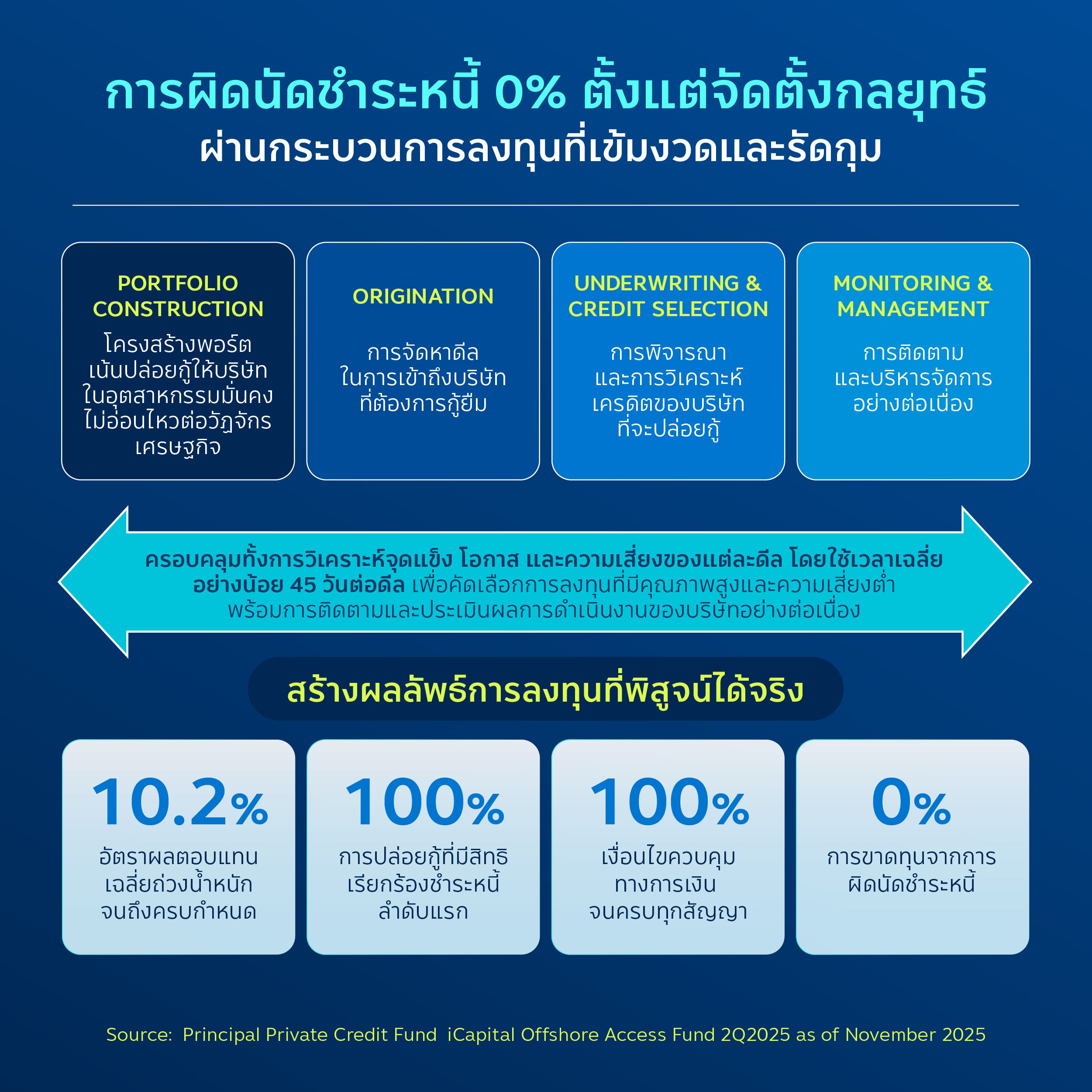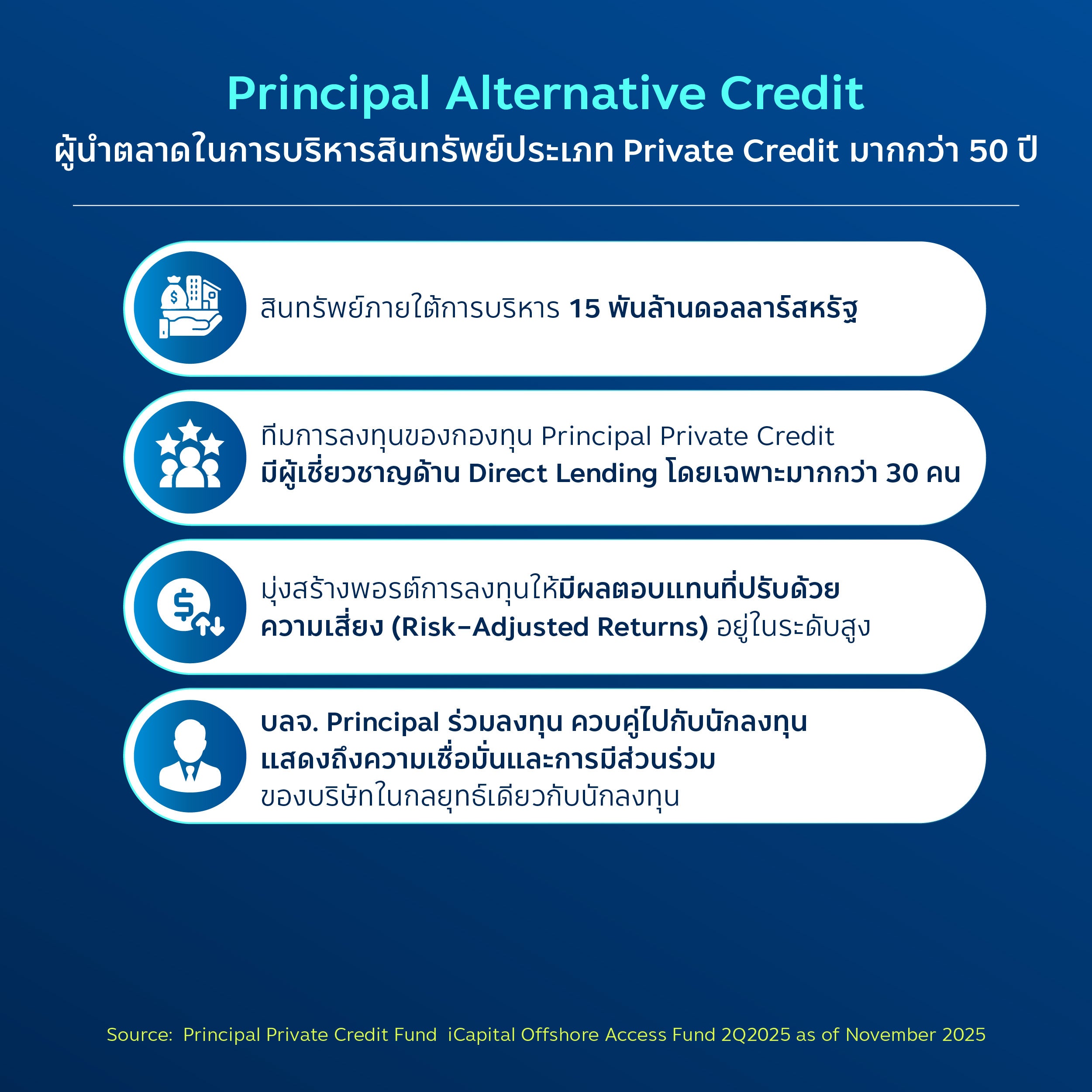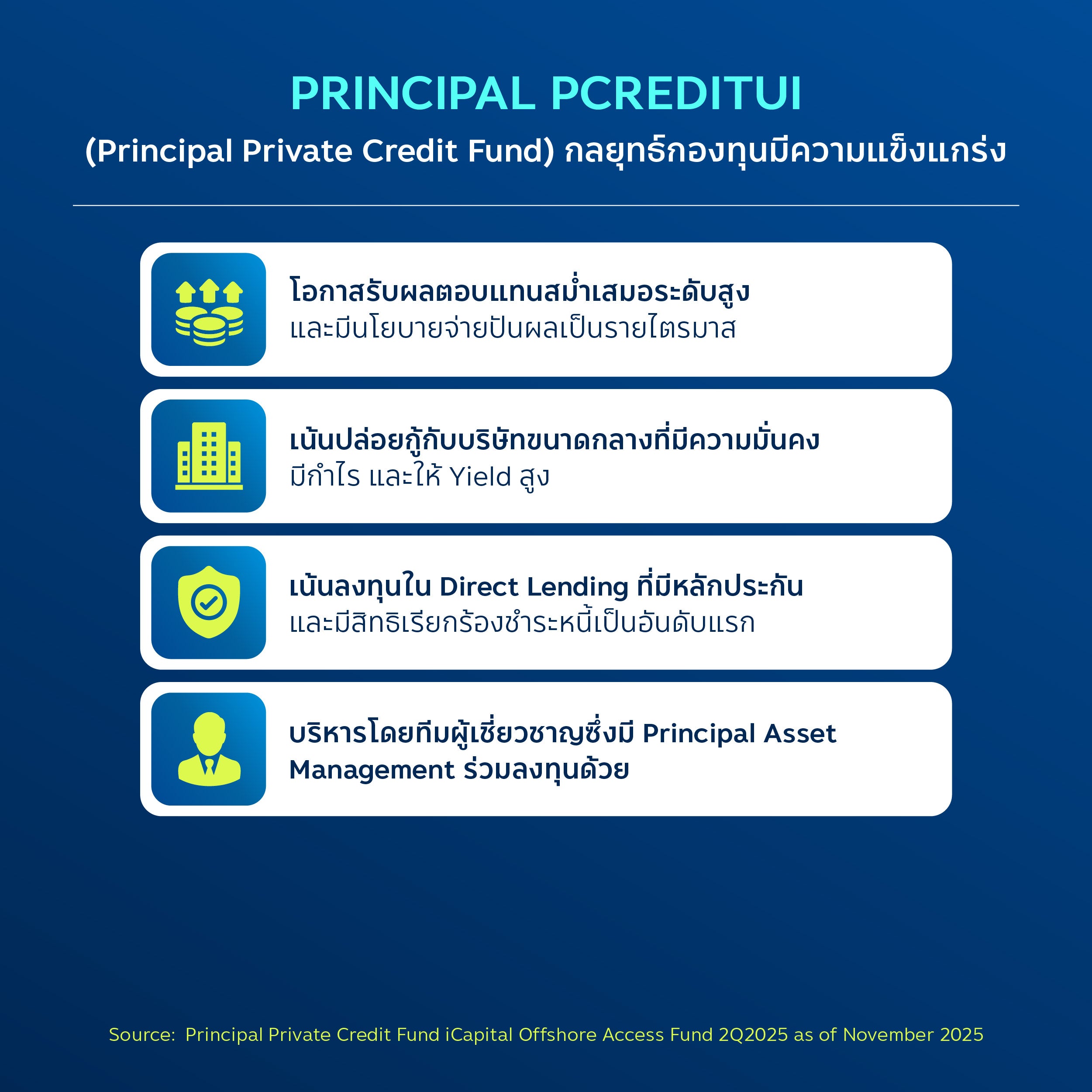 Source: Principal Thailand, Principal Private Credit Fund iCapital Offshore Access Fund 2Q2025, Principal Private Credit Fund Fact sheet 2Q2025 as of November 2025