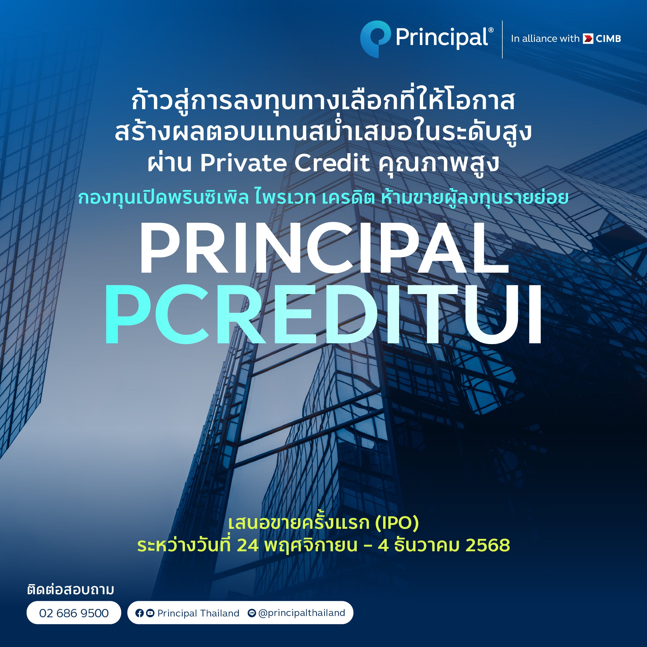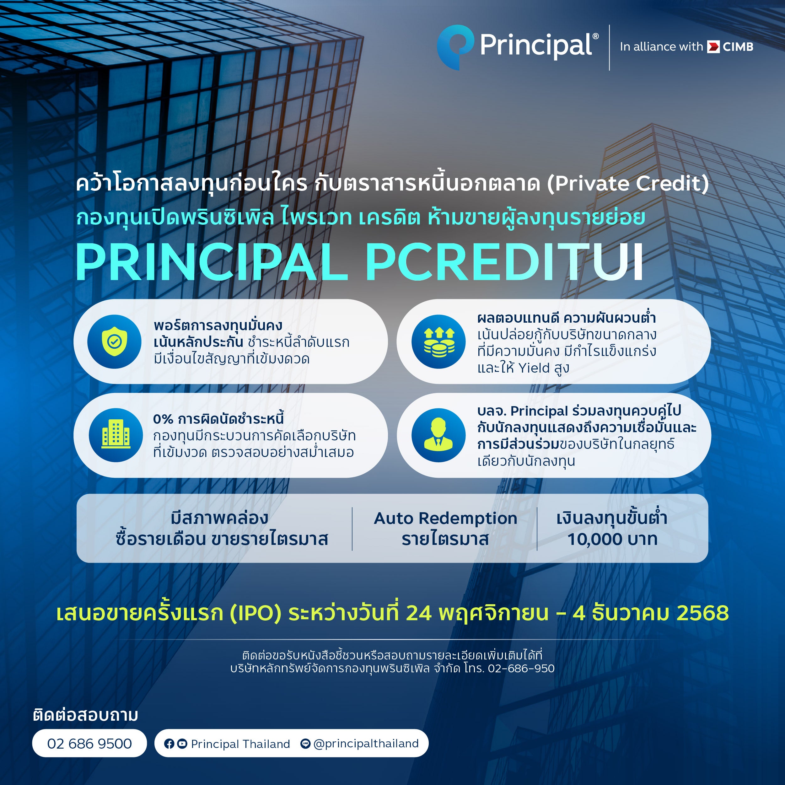 เพื่อไม่พลาดโอกาสในการลงทุน บลจ.พรินซิเพิล ขอแนะนำ กองทุนเปิดพรินซิเพิล ไพรเวท เครดิต ห้ามขายผู้ลงทุนรายย่อย (PRINCIPAL PCREDITUI)