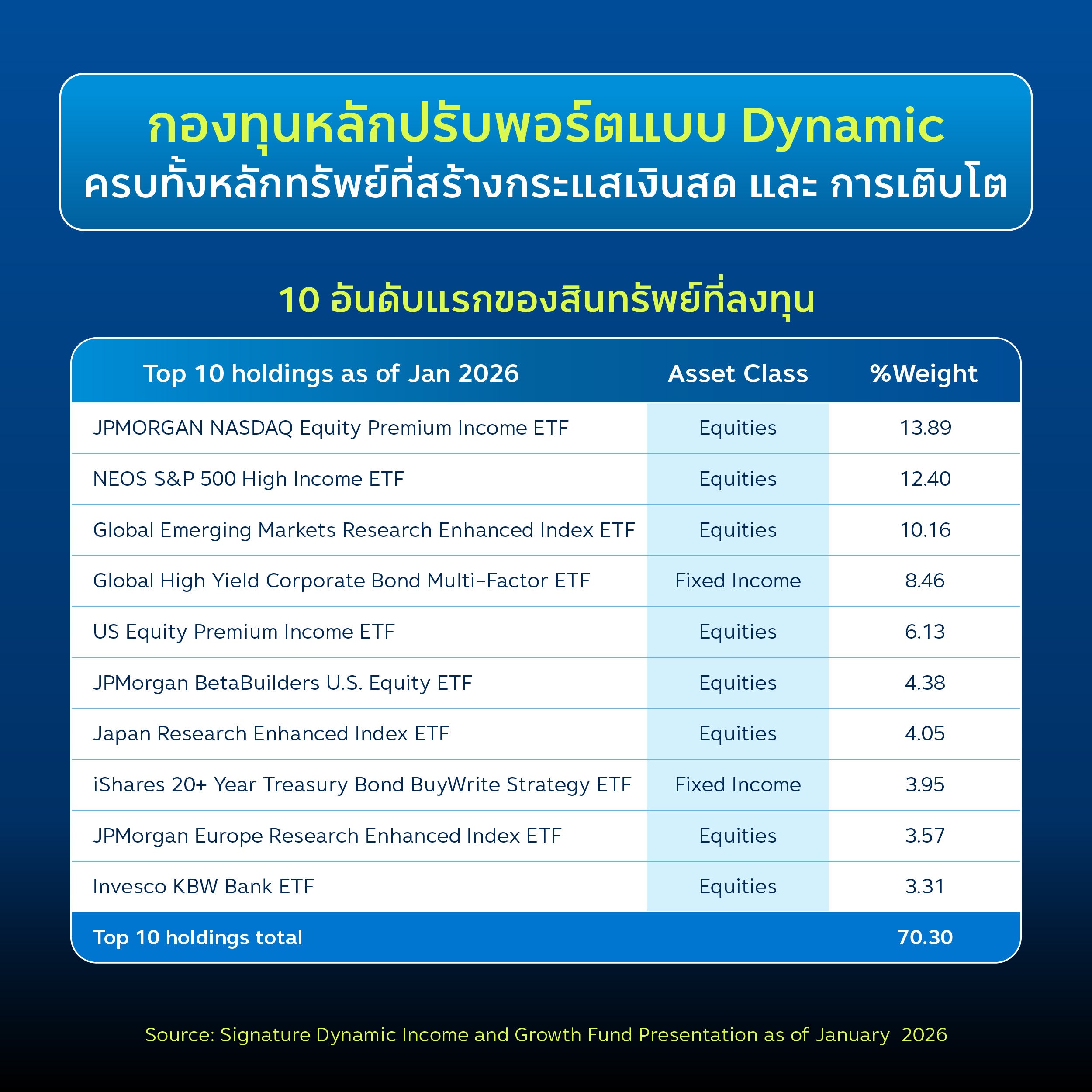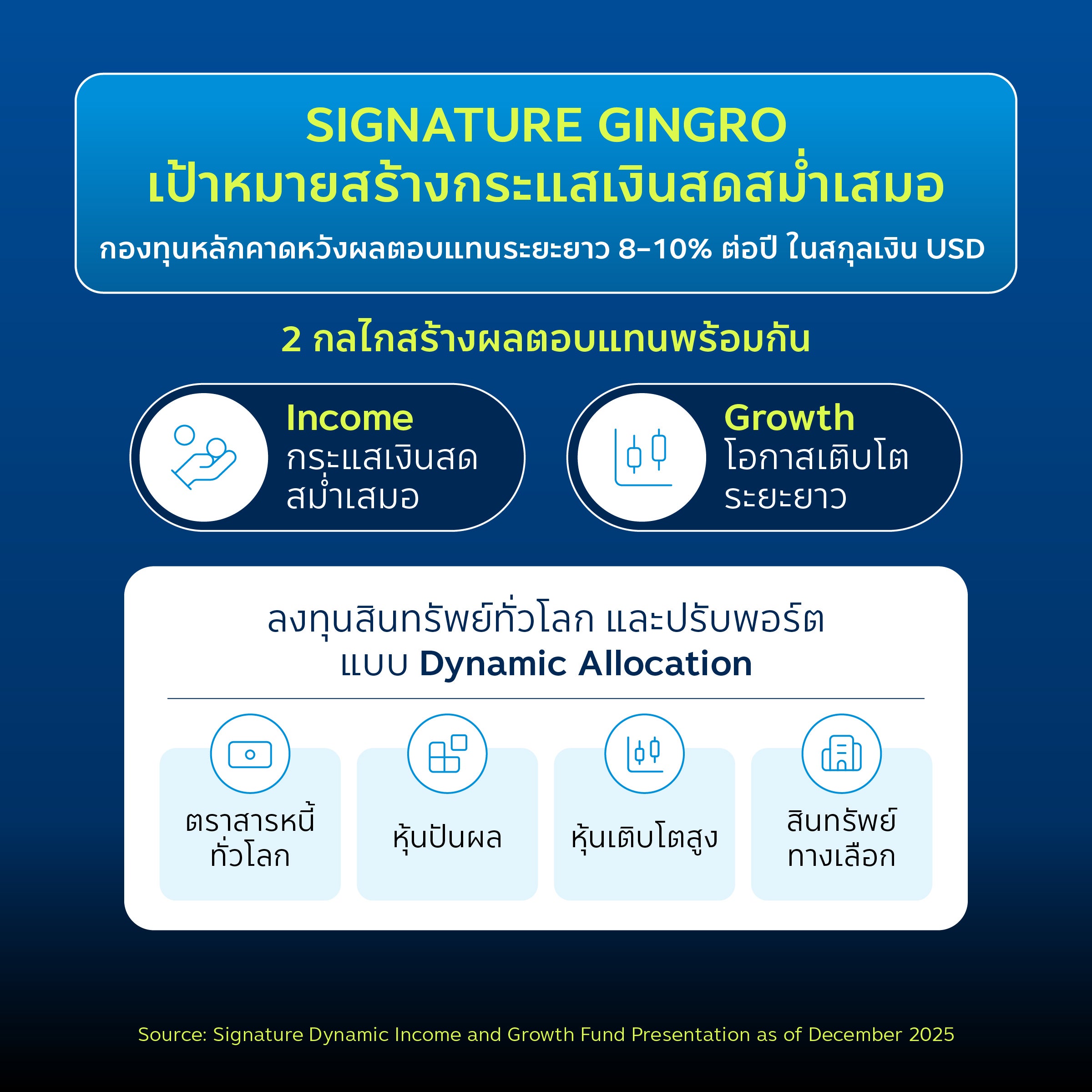 กองทุนเดียวจบ ครบทุกเป้าหมาย เติมโตระยะยาว พร้อมรับกระแสเงินสดสม่ำเสมอ กองทุนเปิดซิกเนเจอร์ โกลบอล ไดนามิก อินคัม แอนด์ โกรท (SIGNATURE GINGRO)