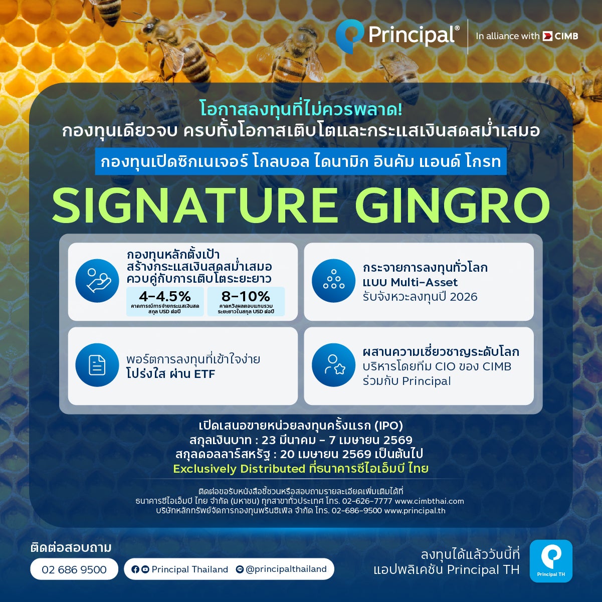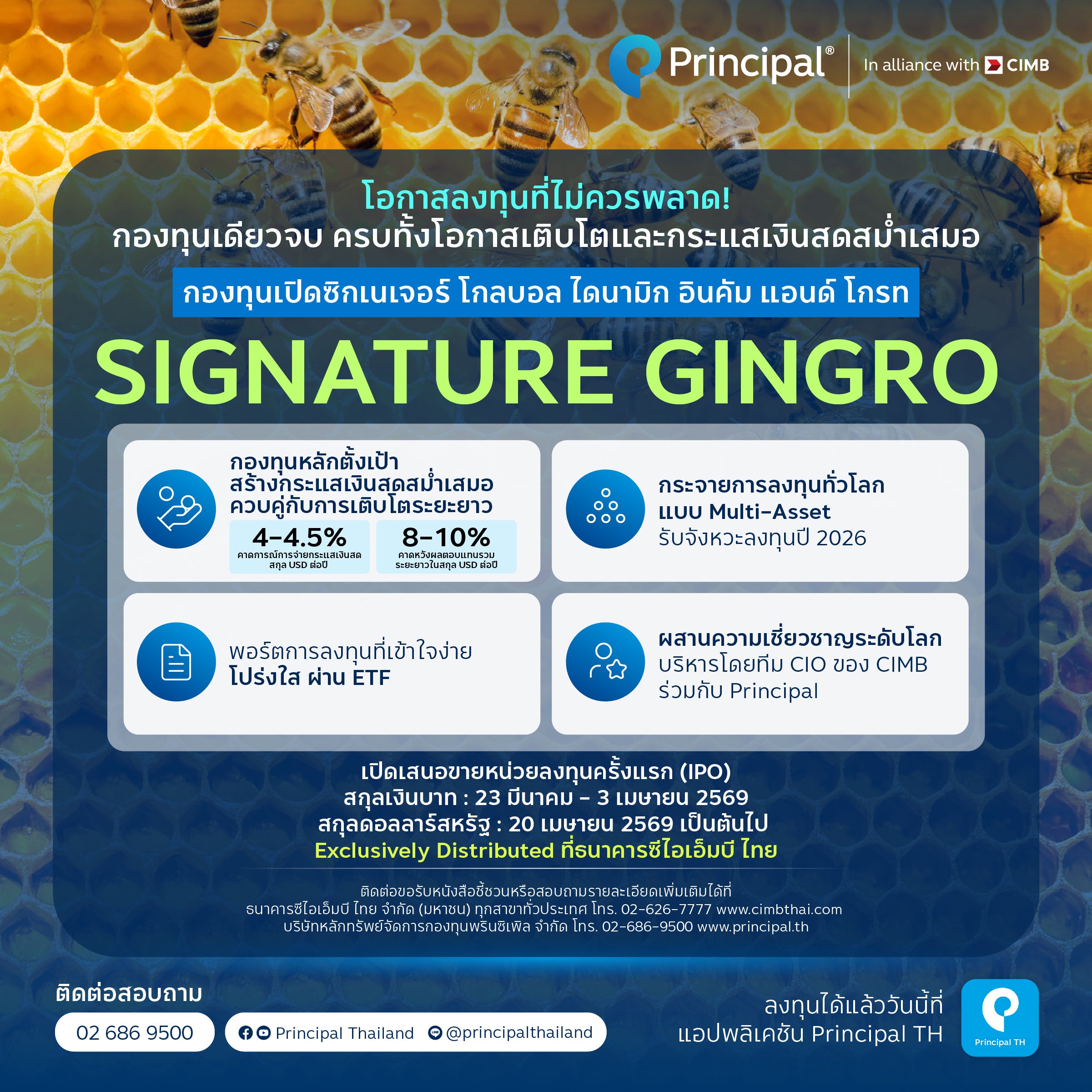 บลจ.พรินซิเพิล ขอแนะนำ กองทุนเปิดซิกเนเจอร์ โกลบอล ไดนามิก อินคัม แอนด์ โกรท (SIGNATURE GINGRO)