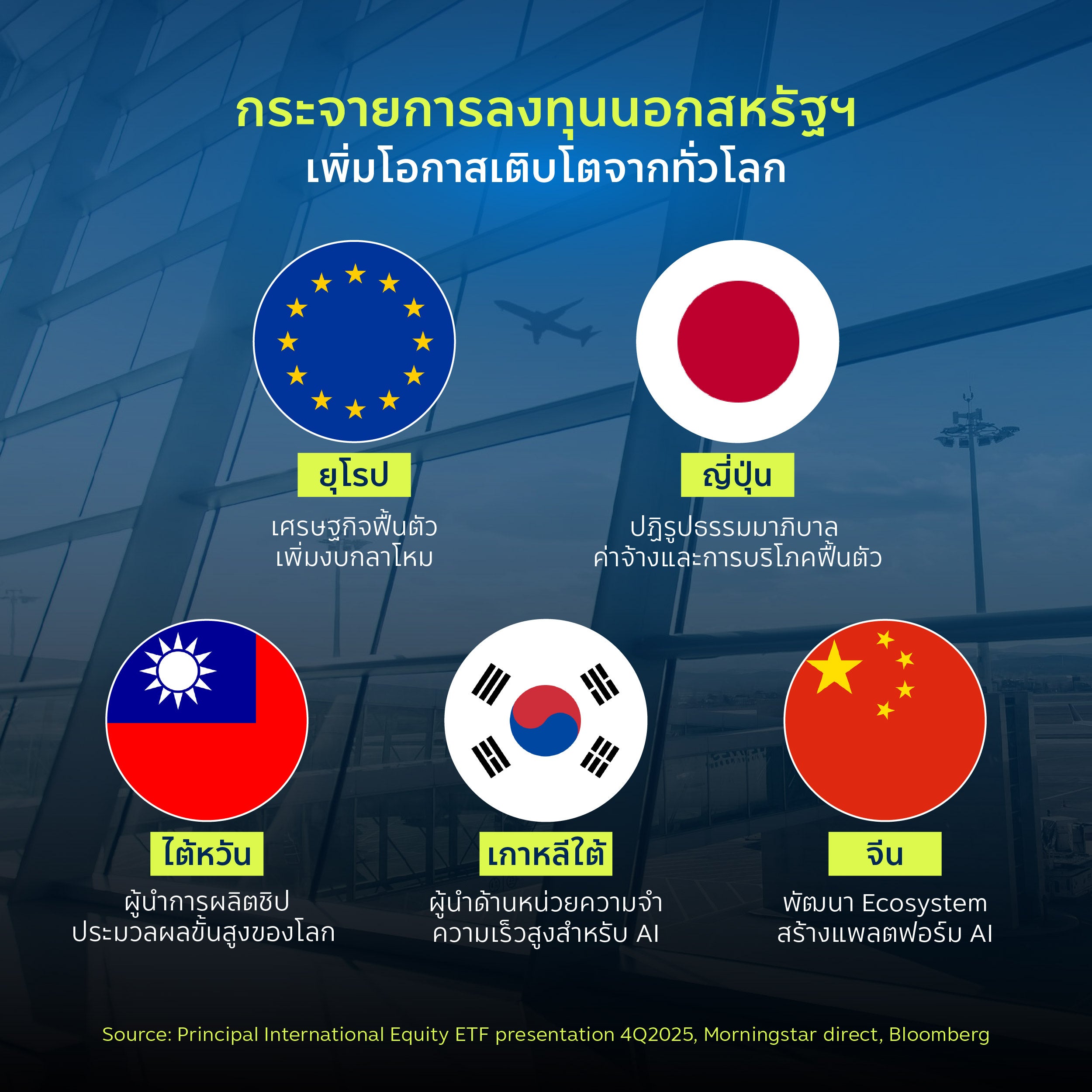 มุ่งขยายโอกาสการเติบโตสู่ตลาดหุ้นทั่วโลกนอกสหรัฐฯ ผ่านการลงทุนในประเทศและอุตสาหกรรมที่มีศักยภาพ