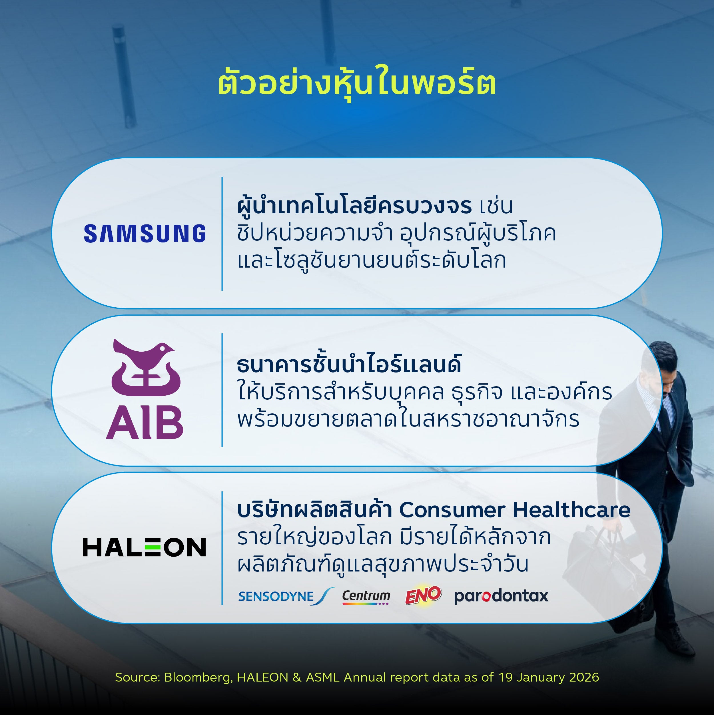 Source: Bloomberg, HALEON & ASML Annual report data as of 19 January 2026