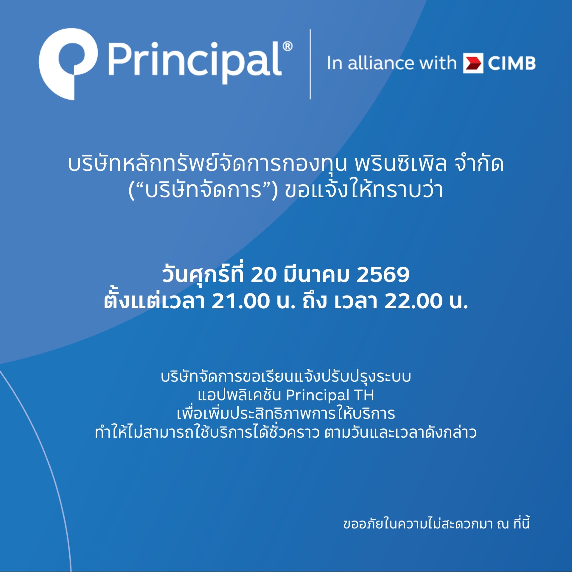 ปิดปรับปรุงระบบชั่วคราวในวันที่ 20 มีนาคม 2569 เพื่อเพิ่มประสิทธิภาพการให้บริการ