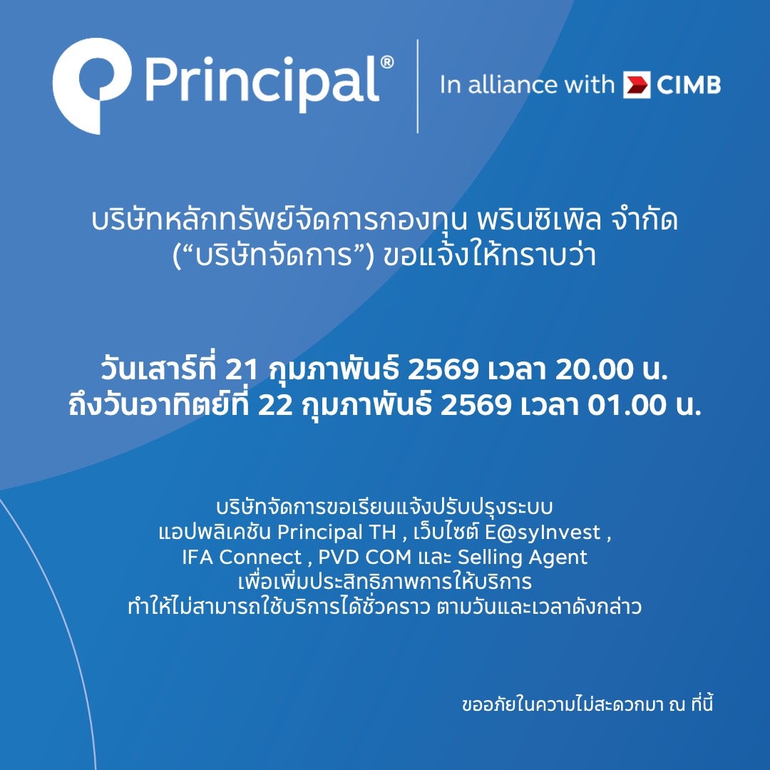 บริษัทหลักทรัพย์จัดการกองทุน พรินซิเพิล จำกัด ("บริษัทจัดการ") ขอเรียนแจ้งปรับปรุงระบบ