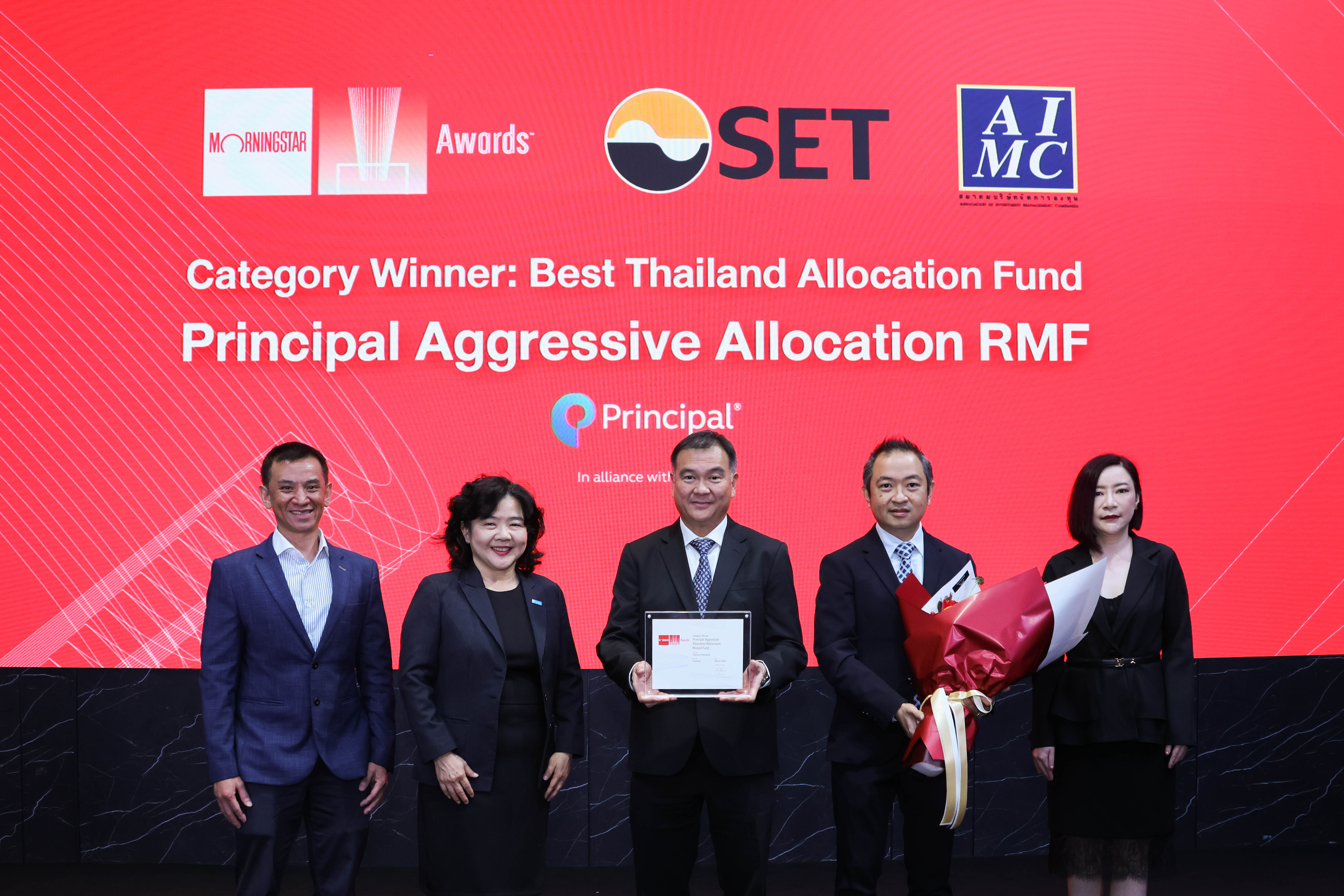 สำหรับกองทุนที่ได้รับรางวัล Best Thailand Allocation Fund คือ กองทุนเปิดพรินซิเพิล อะเกรสซีฟ แอลโลเคชั่นเพื่อการเลี้ยงชีพ (PRINCIPAL AARMF) มีนโยบายลงทุนในหน่วยลงทุนของกองทุนรวมอื่นที่มีนโยบายลงทุนในหุ้น และ/หรือตราสารหนี้ ทั้งในประเทศ และ/หรือต่างประเทศ เพื่อกระจายความเสี่ยงอย่างเหมาะสม เปิดโอกาสเข้าถึงธีมการลงทุนที่หลากหลายทั่วโลก ด้านผลการดำเนินงานตั้งแต่จัดตั้งกองทุน (ข้อมูล ณ วันที่ 30 มกราคม 2569) โดยผลตอบแทนย้อนหลัง 1 ปีอยู่ที่ 7.7% (ดัชนีชี้วัด 11.76% ต่อปี)